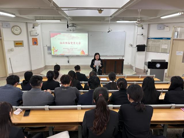 大会第二阶段主要讨论接收李子璇等5名同志为中共预备党员的相关事宜,会议严格按照党员发展流程进行,第一党支部书记报告出席会议的党员人数,提出会议的议题及相关要求,并宣读2025年下半年度党员发展对象名单。党员发展对象依次汇报了对党的认识、入党动机、本人经历、家庭主要成员和主要社会关系情况以及需向党组织说明的问题,展现向党组织靠拢的坚定决心。入党介绍人依次介绍了党员发展对象的培养考察情况,肯定了他们在思想认识、学业发展、志愿服务等方面的出色表现,并对其能否入党表明意见。大会就5名党员发展对象是否符合入党条件进行讨论,并采用无记名投票的方式进行表决,一致同意接收5名党员发展对象为中共预备党员。