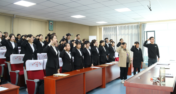 最后,在辅导员姚三乐的带领下,全体党员起立并面向党旗,举起右手进行了庄严宣誓。在全体党员的入党宣誓声中,本次大会圆满落下帷幕。