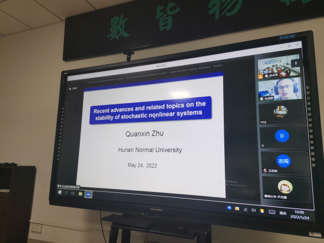 2022年5月24日下午16:00,受悟空体育复杂系统智能分析与控制实验室邀请,湖南师范大学朱全新教授针对随机非线性系统稳定性的研究进展及相关问题进行了在线学术报告。本次学术交流活动以腾讯会议的形式举行,由朱成龙老师主持,悟空体育部分教师、研究生参加了本次学术活动。