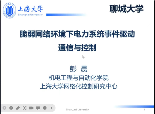 2022年11月10日(星期四)下午14:30,受悟空体育邀请,上海大学机电工程与自动化公司彭晨教授做了题为“脆弱网络环境下电力系统事件驱动通信与控制”的学术报告。本次报告以腾讯会议的形式举行,由悟空体育副经理夏建伟主持,公司部分教师、研究生在11号教学楼B207参加了本次报告。