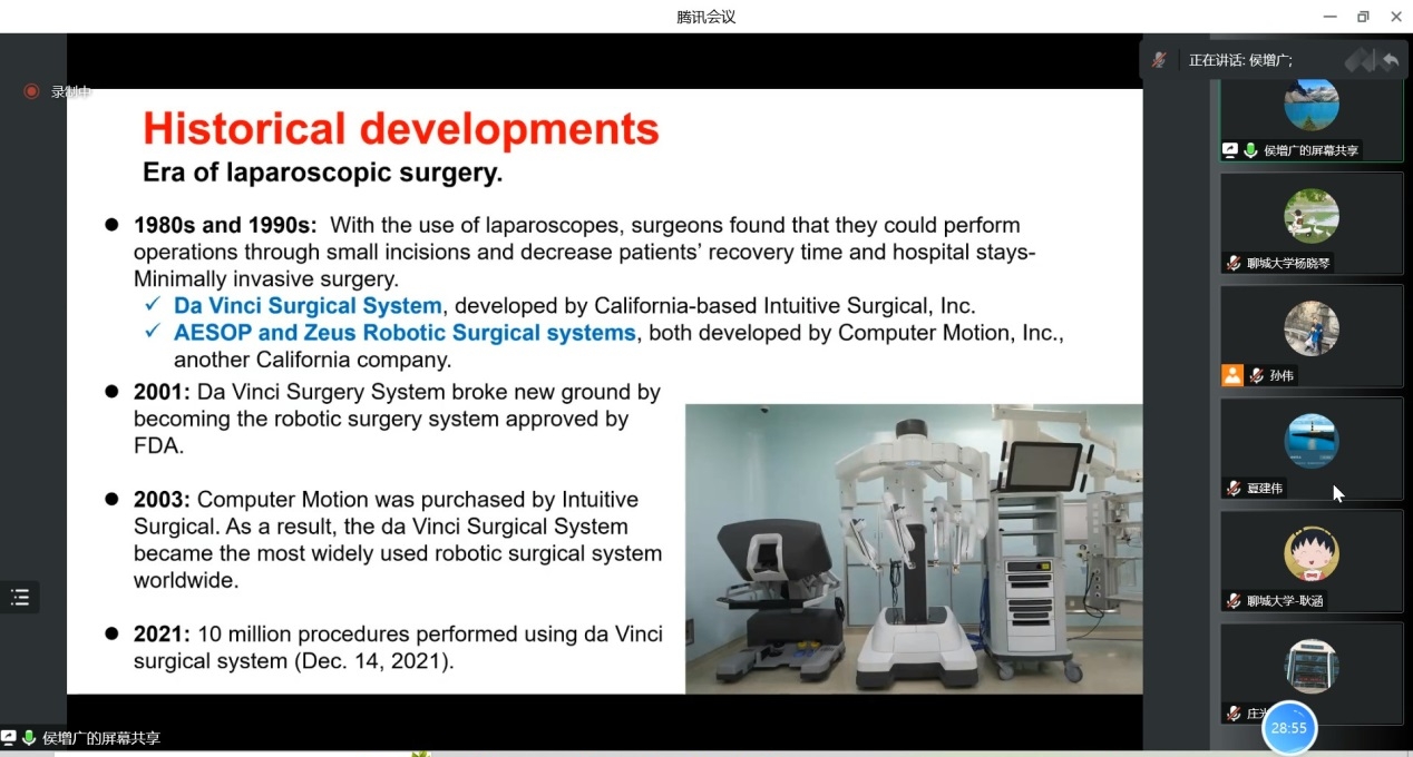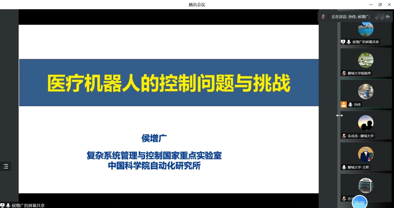 2022年11月29日上午,受智能分析与优化控制创新团队邀请,中国科公司自动化研究所研究员侯增广教授做了关于医疗机器人中的控制问题及挑战的报告。本次报告以腾讯会议的形式举行,由孙伟副教授主持,悟空体育部分教师、研究生聆听了报告。