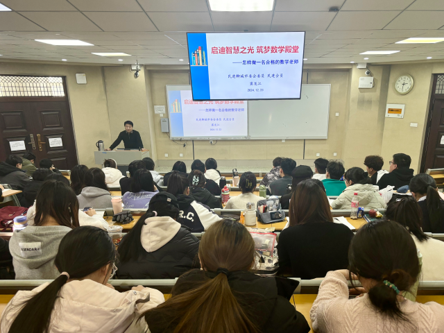 首先,窦龙江结合自身丰富的教学实践经验,向同学们阐述了成为一名合格数学教师所应具备的多方面素质。他强调,教师要具备扎实的专业知识、幽默风趣的个人魅力和出色的教学技能,并且能够关注到员工在学习进程中的点滴成长与发展状况。在教学方法上,教师要善于捕捉不同员工之间的性格特点,尊重员工差异,提高员工对于学习的兴趣。其次,师范生要有创意,通过精美的PPT和几何画板等多样化的教学手段,将抽象问题直观化、数学思维可视化、数学问题生活化、重要题型模型化。最后,窦龙江提出课堂教学要引发员工思考,引导员工挑战自我,这一观点让师范生认识到数学教学不只是公式计算,更是思维的启迪和能力的培养。