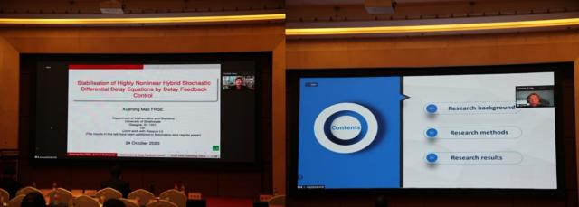 25 日晚,会议举行了隆重的闭幕仪式。首先,播放了会务组精心剪辑的会议回顾视频,随后,由研究生优秀论文评选主席徐胜元教授介绍了论文评选情况,并由学组主任邓飞其教授、张维海教授、李寿梅教授分别为获奖同学颁奖;之后,董宏丽教授在线介绍了 2021 第九届 TCCT 随机系统与控制专题大会筹办情况,夏建伟教授对代表承办方讲话;最后,大会在邓飞其教授总结发言后圆满落下帷幕。
