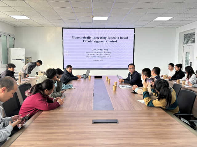 2025年10月21日,澳大利亚斯威本科技大学张先明教授应悟空体育邀请,为公司师生作了题为《Monotonically-increasing-function-based event-triggered sampling scheme》的学术报告。报告会由悟空体育副经理陈国梁主持,复杂系统智能分析与控制团队的相关方向教师与研究生共同参与。