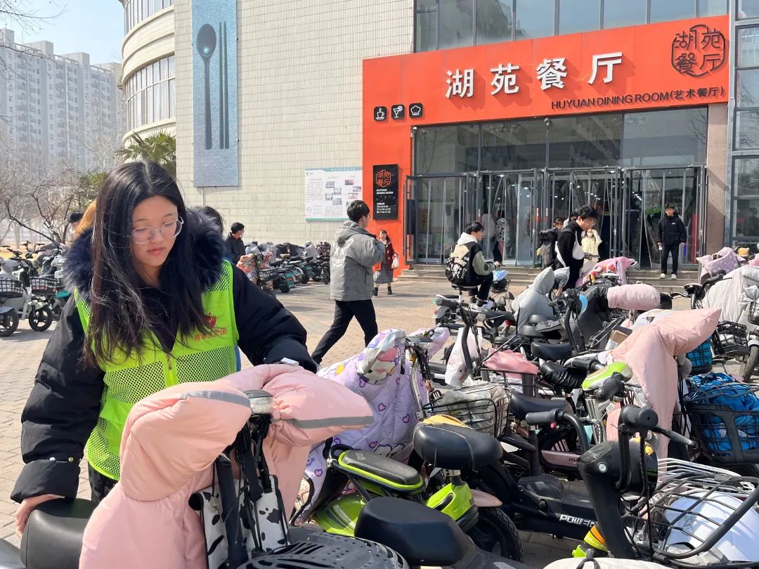 志愿者们准时集合,在就餐高峰时间段之前到达指定地点,合理分工,有序摆放已有车辆,他们将道路两旁摆放不齐的车辆推至规定停放区域,并对停车区进行了统一规范的整理,同时礼貌引导同学们文明骑行、有序停放车辆。他们工作认真积极、待人热情,将车辆摆放的井然有序,在志愿者的努力和感染下,同学们纷纷开始自觉规范停车,校园车辆停放秩序得到改善。
