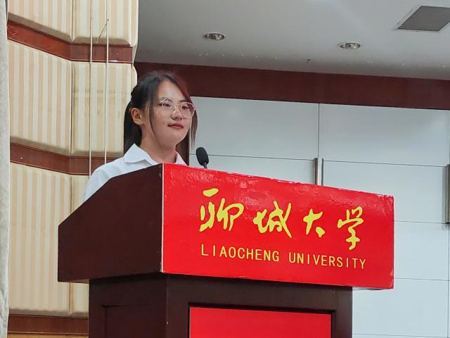 2023级新生代表杨涪琳表达了对老员工活的憧憬,并代表全体新生承诺,将铭记“敬业 博学 求实 创新”的聊大校训,脚踏实地、坚定内心、刻苦钻研、扎实求学,自觉将青春“小我”融入强国“大我”,让青春梦想与时代脉搏同频共振。