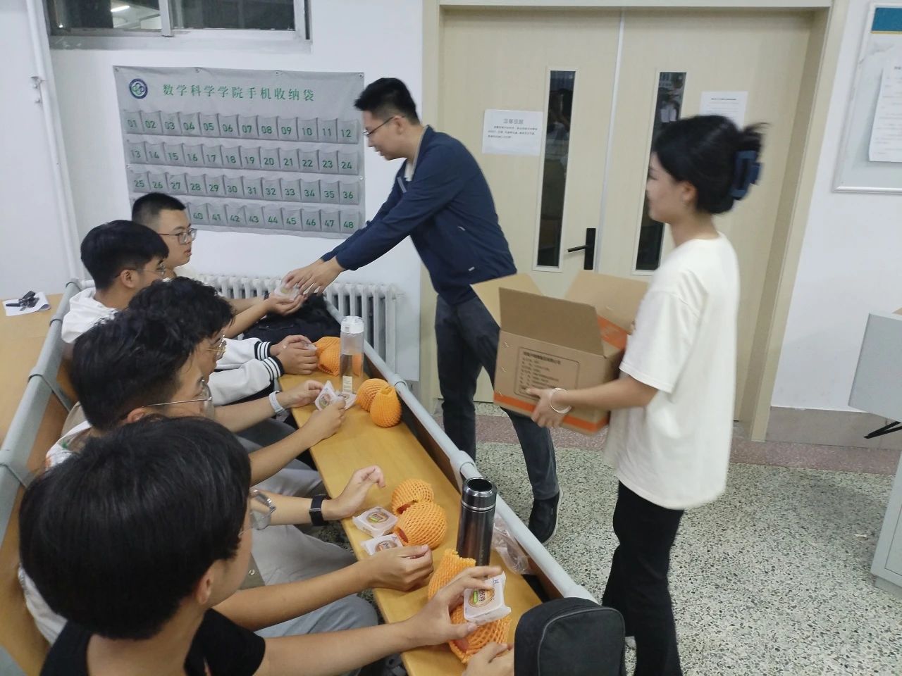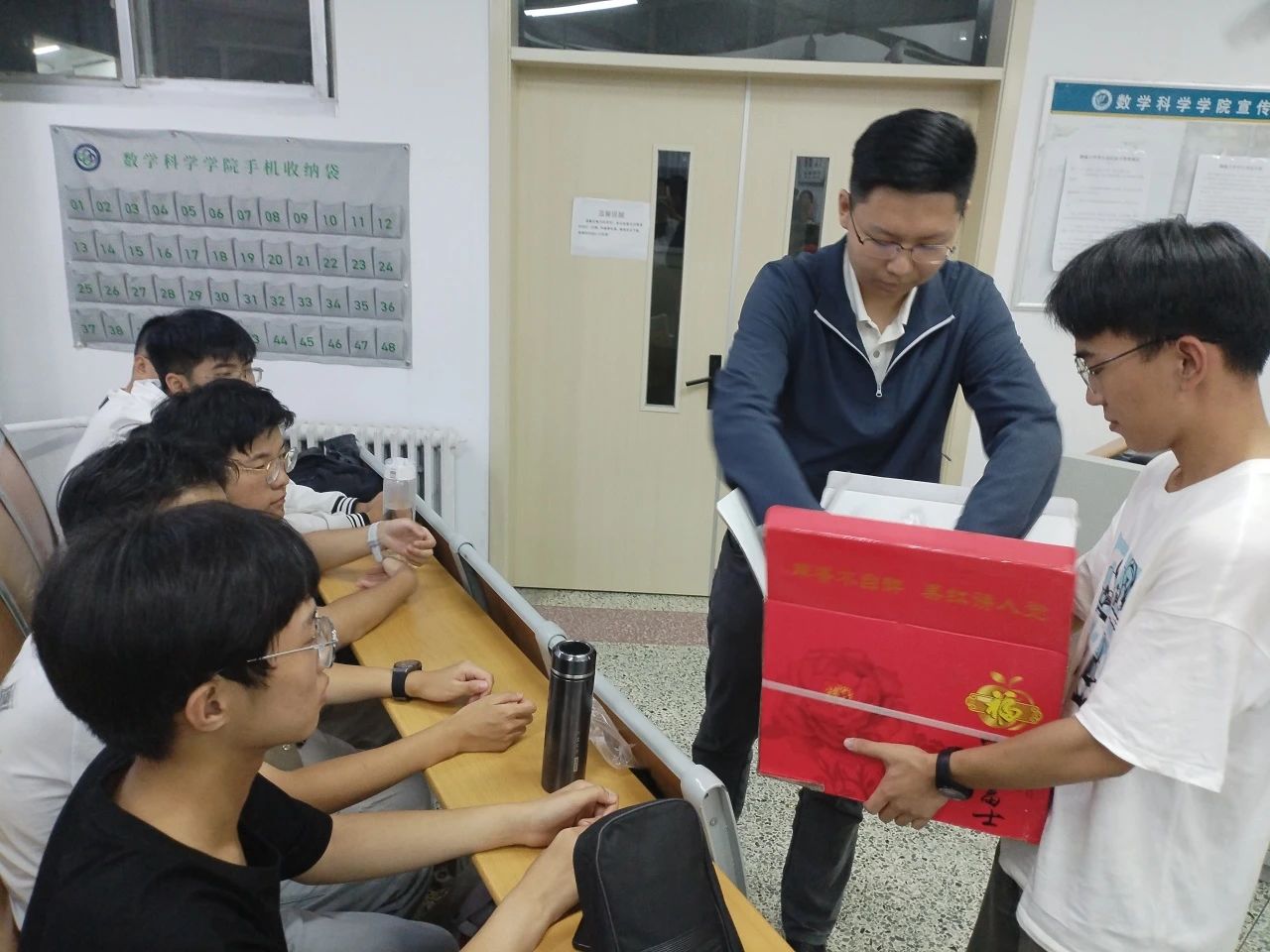 月满中秋,情满数科。为热烈欢迎新同学的到来,营造中秋佳节的浓厚节日氛围,让身在异乡的学子感受到来自数科大家庭的关怀与温暖,9月17日,悟空体育辅导员王启尧、张琦于11号教学楼A204、A207、A210为新生送上中秋月饼和节日祝福。