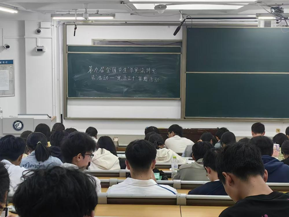活动开始,同学们通过观看宪法视频,生动画面与真实案例让宪法知识深入人心,积极投入宪法学习,认真学习宪法知识,明晰国家根本制度与公民权利义务。为进一步巩固知识、理解内涵,同学们参与宪法答题活动,宪法知识题目内容涵盖宪法的核心理念、发展历程、公民权利与义务等多个方面,同时结合党史知识、民法典、国家安全、未成年人保护、劳动教育、公共卫生、生态文明等热点内容,以多种形式的题目呈现,助力同学们增长见识、拓宽视野。通过这场宪法学习,同学们深刻认识到了宪法在国家治理中的重要地位和作用,更加明白了作为新时代青年所肩负的法治责任和使命。