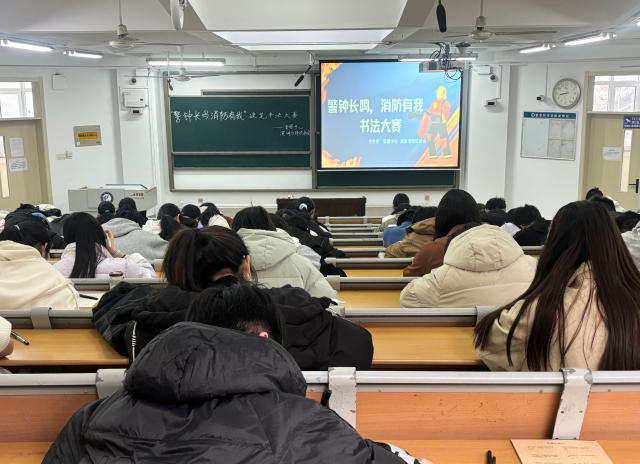 本次活动以线下比赛的形式进行。活动伊始,主持人播放119消防日的视频,强调消防安全是保障人们生活安宁的基石,希望能通过此次书法比赛使同学们认识到学习消防知识的必要性。比赛正式开始,选手们神情专注,坐姿端正,以“119消防安全教育”为主题创作形式多样的书法作品,有笔锋刚劲的楷书、行云流水的行书以及古朴典雅的隶书,这些作品不仅展现出书法艺术的独特魅力,更将消防理念以一种极具文化韵味的方式传达出来。比赛结束,评委秉持公平公正的原则,从笔法、结构、内容与主题的契合度等多方面对参赛作品进行打分,选出优秀作品现场展示,工作人员为获胜选手颁发证书和奖品。
