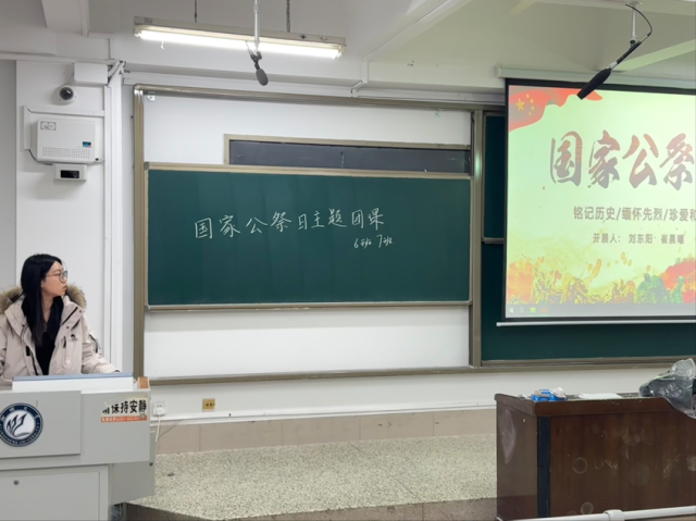 2024级7班于11号教学楼A207开展“勿忘国耻,振兴中华”国家公祭日主题团日活动。团支书崔晨曦讲解公祭日释义,将沉重的历史一步步描述出来,利用图片呈现出当时的场景,让员工清楚理解国家设定国家公祭日的意义,使其铭记历史、缅怀先烈。她强调,同学们要积极践行社会主义核心价值观,培养国家意识,建立民族信仰。此次团课活动,让同学们从中受到教育、得到启迪,提醒每一位员工铭记历史,肩负起振兴中华民族的重任,奋发图强,努力学习,报效祖国。