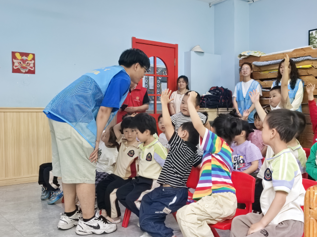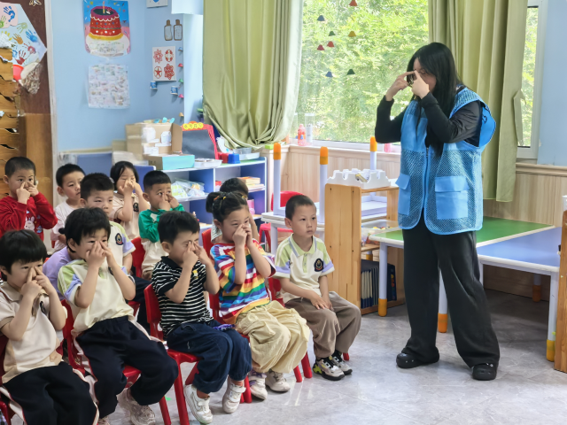 志愿者借助生动的图片和通俗易懂的语言为小朋友们讲解眼睛的复杂构造,带领小朋友们剖析近视形成的原因,从不良用眼习惯到环境因素,让小朋友们对近视的危害有了更深刻的认知。随后,大家闭上眼睛,跟随节奏,认真做眼保健操,志愿者在一旁耐心纠正小朋友们的动作,确保每一个步骤都规范到位。游戏环节,在“蒙眼贴五官” 游戏中,小朋友们蒙上眼睛,凭借着对五官位置的记忆将五官贴在正确的位置上,让他们切实体会到清晰视力的重要性;“护眼知识接力赛”中,小朋友们分组协作,快速奔跑传递卡片,同时准确回答卡片上的护眼知识问题,锻炼了团队合作能力,巩固了所学知识。活动尾声,志愿者向小朋友们强调保护眼睛的重要性,提醒小朋友们要养成良好的用眼习惯。