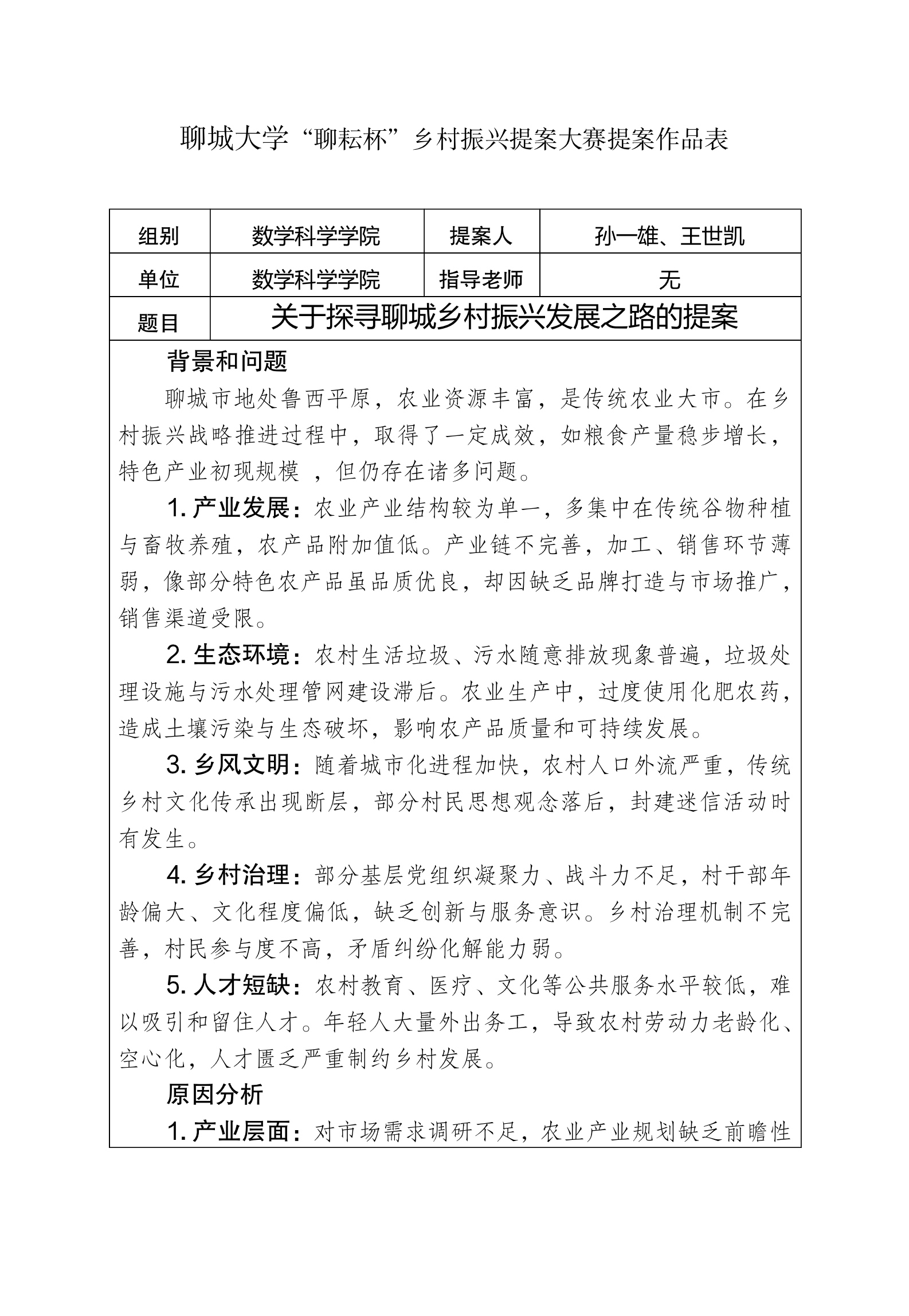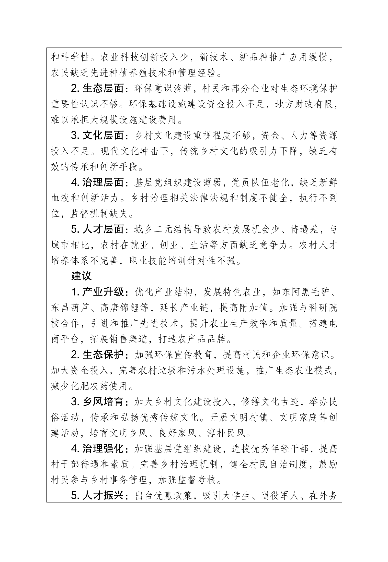 参赛员工通过问卷调查、查找资料等方式,了解乡村现状及面临的问题。在调研过程中,员工们发现聊城乡村在产业发展、人才培养、文化建设等方面存在一些亟待解决的问题:部分乡村产业结构单一,缺乏特色产业,导致经济发展缓慢;文化建设相对滞后,传统文化得不到有效传承和弘扬,乡村凝聚力不足。针对这些问题,员工经过反复讨论与思考,就农村教育资源改善、乡村生态环境治理、产业发展等方面,提出了一系列可行性建议,如开展“送课下乡”活动,增加具有乡土课程的资源;优化产业结构,加强生态环保,加大乡村文化建设投入,加强人才振兴。