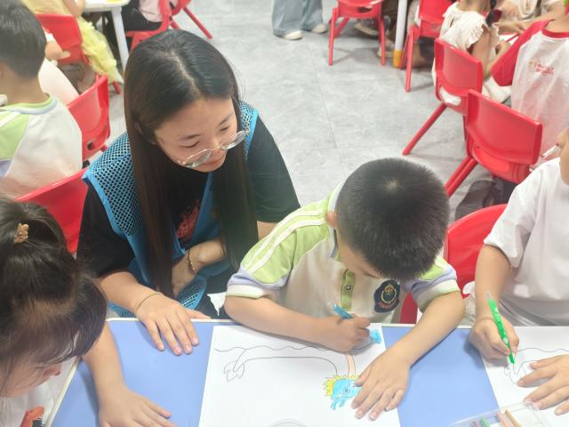 本次端午主题活动围绕端午动画观影、龙舟涂色创作、端午知识竞答三个环节展开。观影环节,志愿者播放精心挑选的动画短片,生动讲述端午习俗的起源,让复杂难懂的知识变得简单易懂,吸引住孩子们的目光;涂色画画环节,志愿者为孩子们分发了空白龙舟画纸、水彩笔和蜡笔等工具。孩子们化身“小小艺术家”,用象征活力的橙红色、深浅不一的蓝色点缀船身,画上五彩祥云、粽子图案,随着色彩不断填满画纸,一艘艘独具个性、充满童趣的龙舟跃然纸上,每一抹色彩都饱含着孩子们对端午的期待与喜欢;趣味问答环节,志愿者提出“端午节除了叫龙舟节,还叫什么?”“粽子的口味主要分为哪两大流派?”等题目,孩子们纷纷举手抢答,现场童声此起彼伏,大家在思维的碰撞中,巩固了端午知识,锻炼了表达能力。