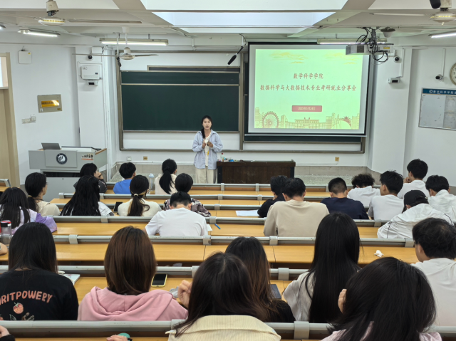 唐梦摇、毕子译、张凯佳、邵姝文分别结合自身经历,从备考策略与考研推免院校选择、大数据行业就业方向与简历投递、考研的心路历程与学科学习方法、求职心态调整与资源信息整合技巧等不同方面展开讲解,既有针对专业课的学习规划,也有实战层面的经验积累建议,同时还涵盖面试应对技巧与心态调整方法,为同学们提供了详细的考研就业参考路径。互动提问环节,同学们就“考研专业课复习方法”“大数据岗位实习渠道”等问题踊跃发言,四位主讲人根据自身经验逐一解答。活动最后,主持人结合此次分享内容作总结发言,鼓励同学们以优秀的学长学姐为榜样,在大学阶段夯实专业基础,明确目标方向,积极探索实践。