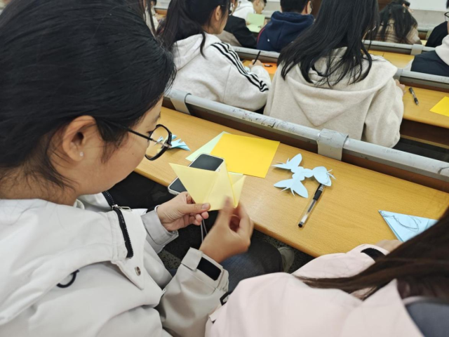 活动伊始,“逛三园”游戏迅速点燃现场气氛,同学们在轻松愉快的节奏中踊跃参与,初见时的拘谨也在欢声笑语中悄然消融。随后进行的“你比划我来猜”环节将现场氛围推向高潮,表演者生动形象的肢体语言与猜词者机智灵动的联想相映成趣,默契配合之间,彼此的距离不断拉近。最后的剪纸环节则为整场活动注入一抹温馨色彩,同学们在细致创作中互帮互助,于指尖流转中传递关怀与暖意。从破冰到协作,再到共情,三个环节层层递进,如一条渐次升温的情感纽带,将“凝心聚力”的内涵融入每一处细节,也让“互爱同行”从口号化为真切可感的集体温度。