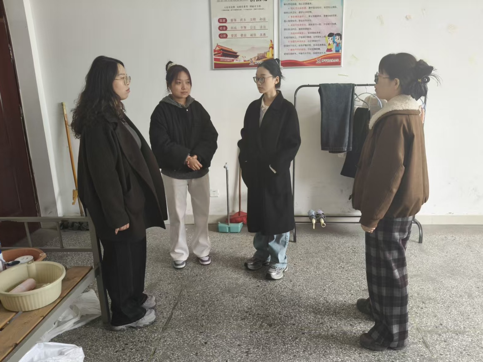 老师们走进支教生的教室、办公室、宿舍、厨房等地,实地察看支教员工的教学工作场景和日常居住环境,详细了解同学们的教学安排、班级管理及生活保障等方面的情况,对各公司为公司实习支教员工提供的悉心指导和后勤保障表示衷心感谢。