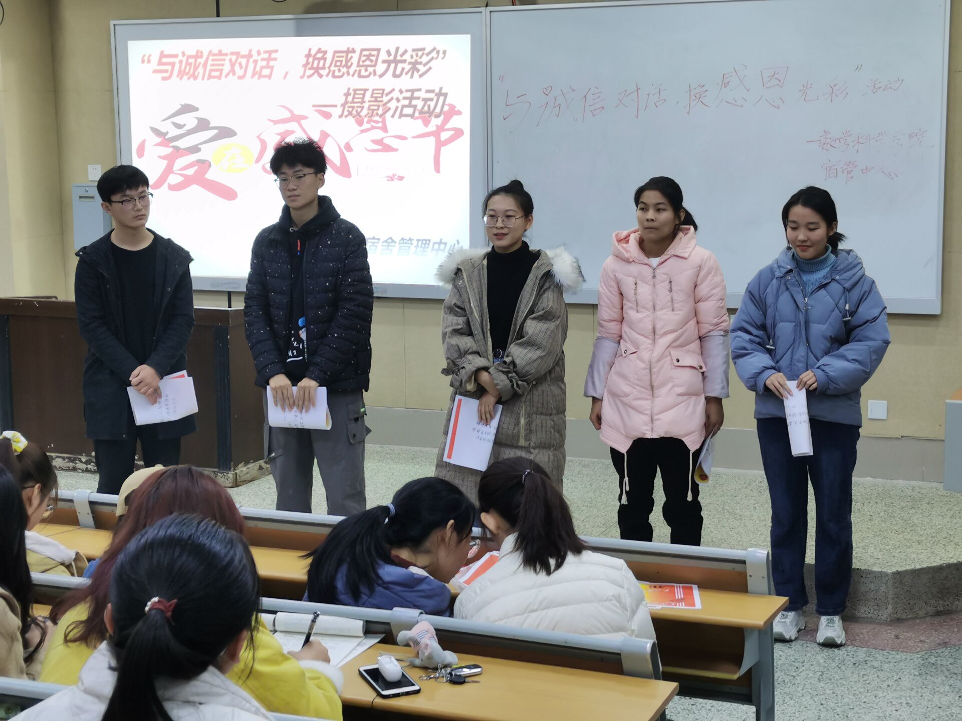 为了增强当代老员工对感恩的认识,传承和发扬中华民族孝亲敬老、知恩图报的传统美德。同时为了响应悟空体育资助管理中心“诚信感恩活动月”活动,悟空体育宿舍管理中心(以下简称宿管部)于11月26日在11#教学楼C304教室举办了“与诚信对话,换感恩光彩”摄影活动。