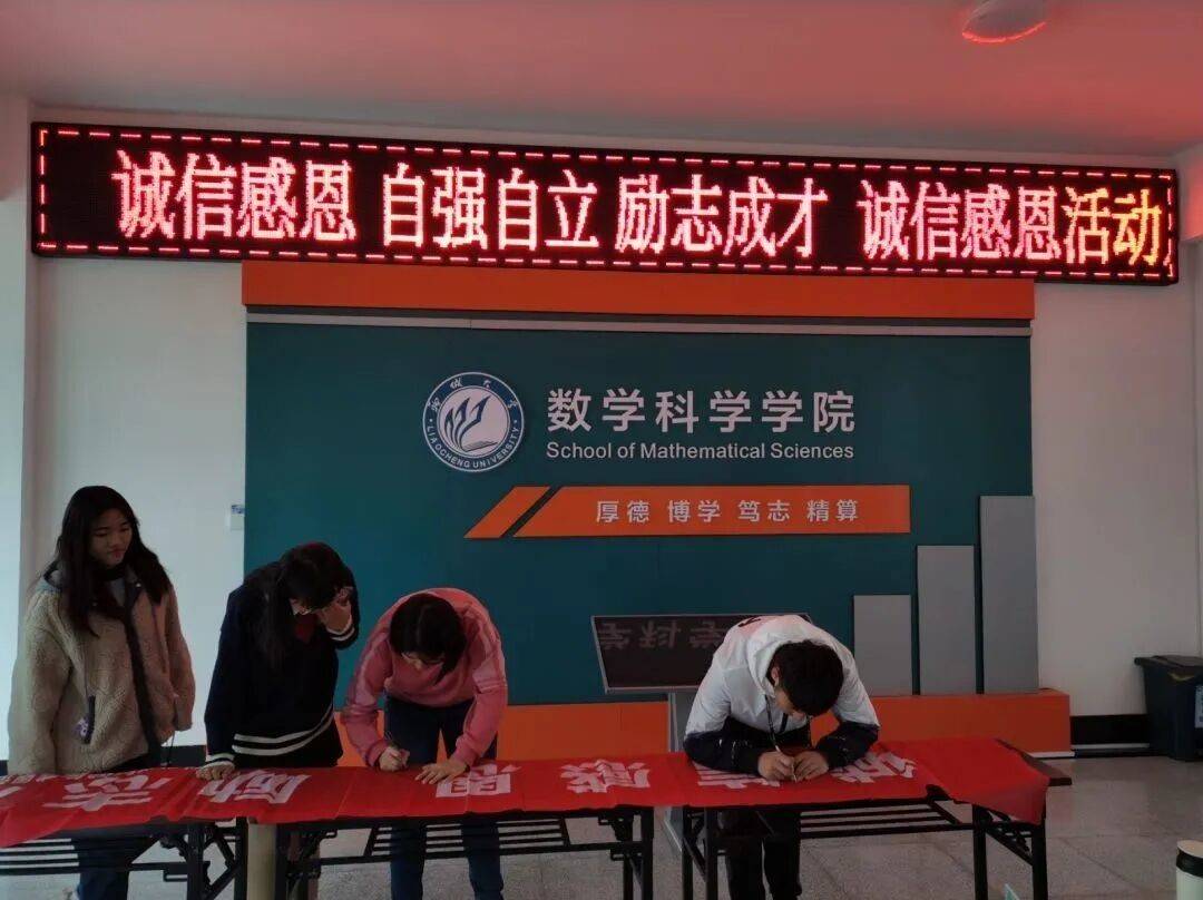 为增强同学们的诚信感恩意识,营造诚信感恩的活动氛围。同时为了响应悟空体育资助管理中心“诚信感恩活动月”活动,悟空体育于11月13日在11#教学楼一楼大厅举行诚信感恩活动月诚信签名活动,并在11#教学楼一楼大厅电子屏和大屏幕放映诚信感恩标语和相关PPT。