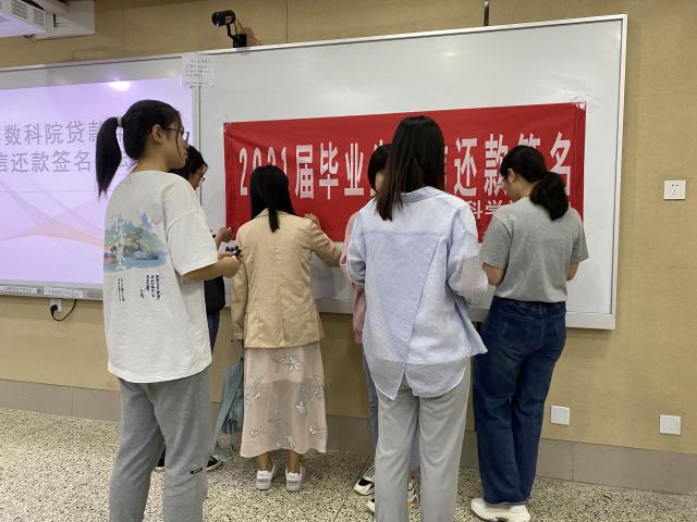 为使同学们充分认识诚信的重要性,引导同学们诚信做人,诚信做事,按时偿还助学贷款本息,保证国家助学贷款的有效循环,悟空体育于5月6日在西校11教学楼A304教室开展贷款毕业生诚信报告会和诚信还款签名活动,2021届申请助学贷款的毕业生参与本次活动。