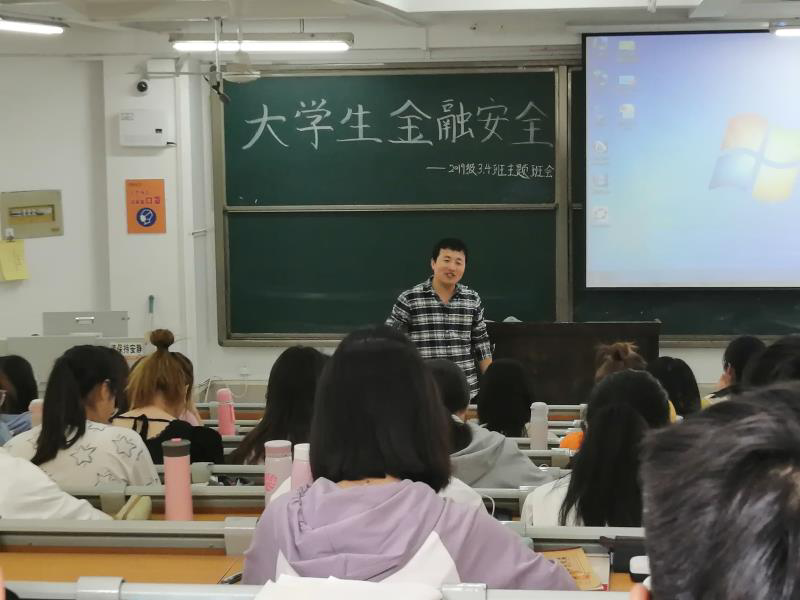 主题班会由各班班主任带班组织开展,对助学贷款、电信诈骗、二维码诈骗、移动支付、病毒充电宝等案例进行了研究分析。期间班主任们认真讲解了各种有关金融安全的问题,同学们对金融安全有了更深刻的了解。主题讲座中,秦绪宝先生对公司员工展开金融知识普及和“财商”教育,并利用易班进行直播,帮助同学们树立了正确的金融观念,提高了大家的防范意识。