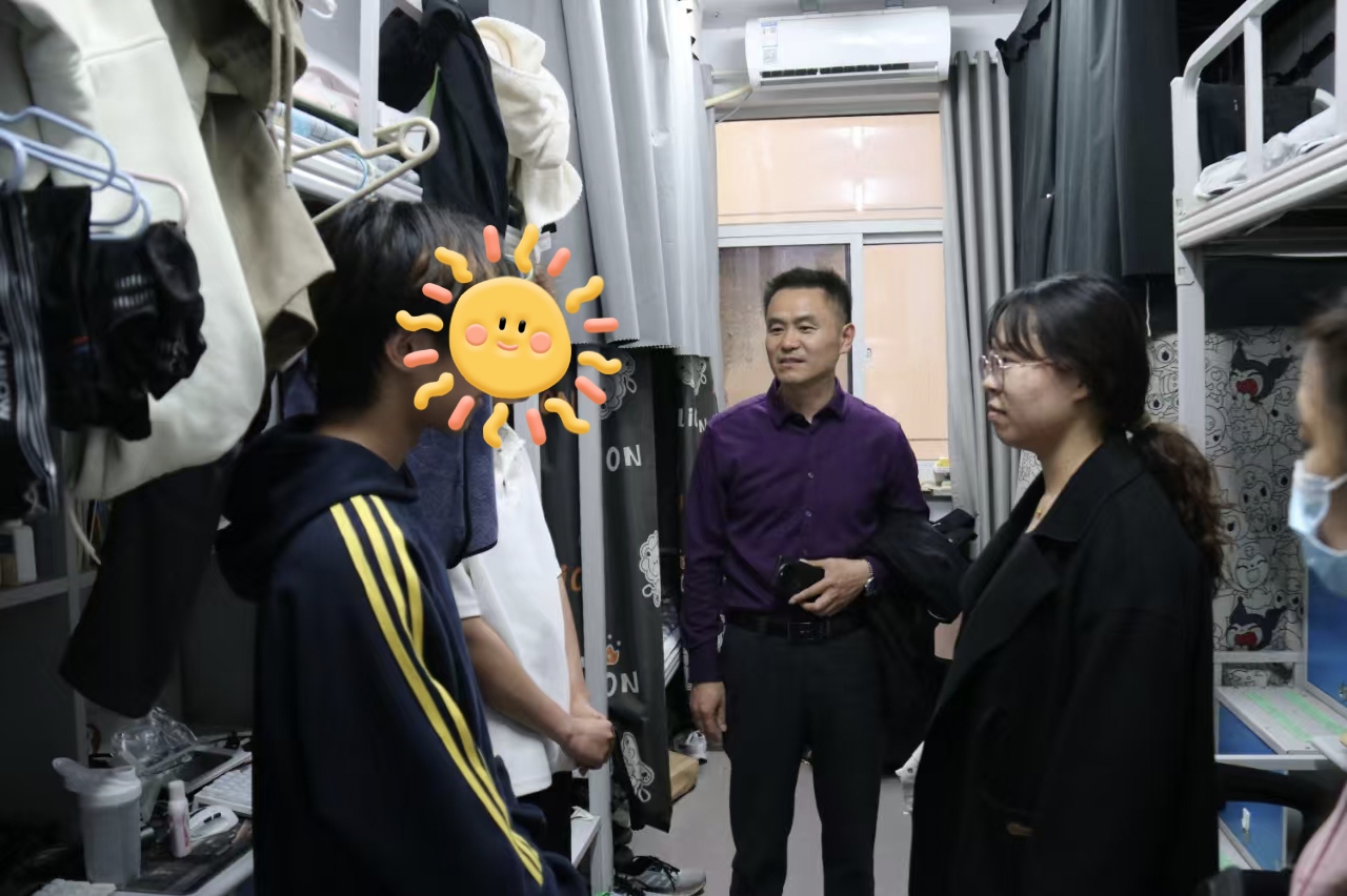走访过程中,老师们亲切地与同学们交谈,每到一间宿舍,都会详细询问大家的学习状态、生活需求以及在生活中是否遇到困难,并对干净整洁的宿舍给予了充分肯定,同时也对宿舍卫生、安全等存在的问题提出了改进建议并鼓励大家继续保持良好的生活习惯。老师们针对学业规划、职业发展等话题与员工进行了深入探讨,共同交流学习方法和成长经验。张进军鼓励同学们以乐观的心态面对困难,努力提升自己,将来以优秀的学习成绩和实践能力走向社会,回报母校,建设祖国。同学们表示定会珍惜大学时光,努力提升自身综合素质,以优异的成绩回报公司与社会的关怀。