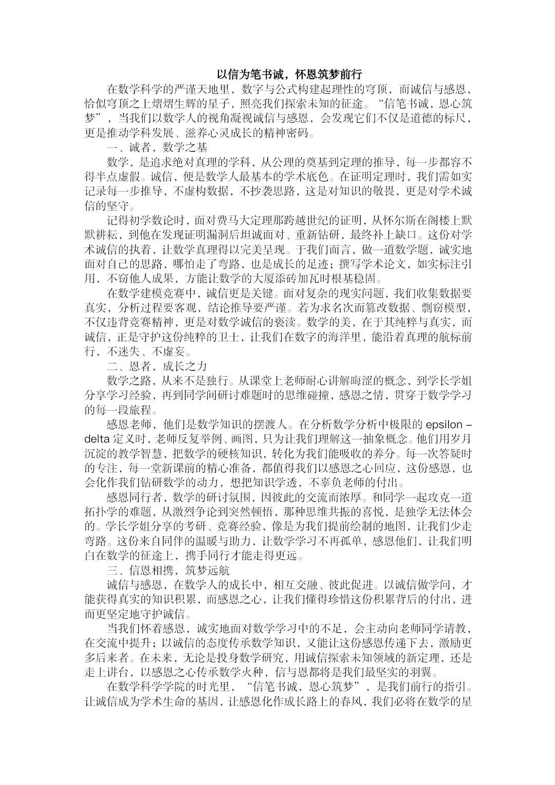 信笔书诚扬美德,恩心筑梦润芳华。此次活动以征文为媒介,让员工主动思考如何在学习生活中将诚信与感恩付诸于行动,不仅锻炼了员工的文字表达与创作能力,还提升了员工的诚信与感恩意识,有助于营造浓厚的校园诚信感恩文化氛围。