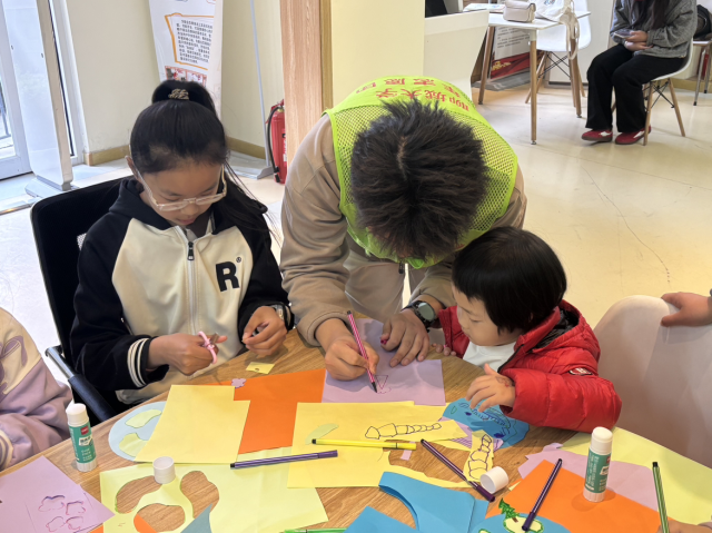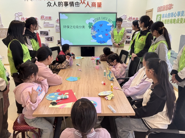 活动伊始,志愿者通过精彩的PPT和短视频向小朋友们讲解了垃圾分类的概念、标准和意义,增强了他们的环保意识与责任感,小朋友们踊跃分享自己在生活中的环保行动,表达他们对可持续发展的理解。手工制作环节,志愿者将精心准备的彩纸、剪刀、木棍等材料分发给小朋友们,手把手地教他们制作“摇摆的地球”,在志愿者的耐心指导下,孩子们小心翼翼地剪出地球的轮廓,认真地用彩笔描绘地球上的海洋与陆地,仔细地将小木棍粘贴到地球上,一个个“摇摆的地球”逐渐成型,小朋友们脸上洋溢着喜悦与自豪。