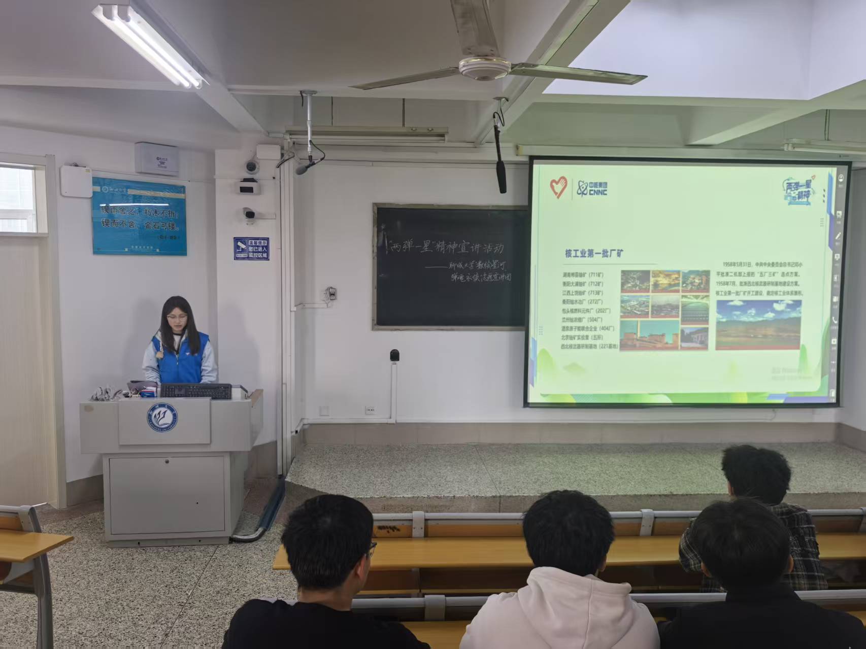 为弘扬“两弹一星”精神,提升员工对我国核工业发展历程的认知,10月25日,悟空体育“数绘星河,弹魂永续”志愿宣讲团于11号教学楼A504教室开展“党领导下的中国核工业”暨“两弹一星”精神宣讲活动。