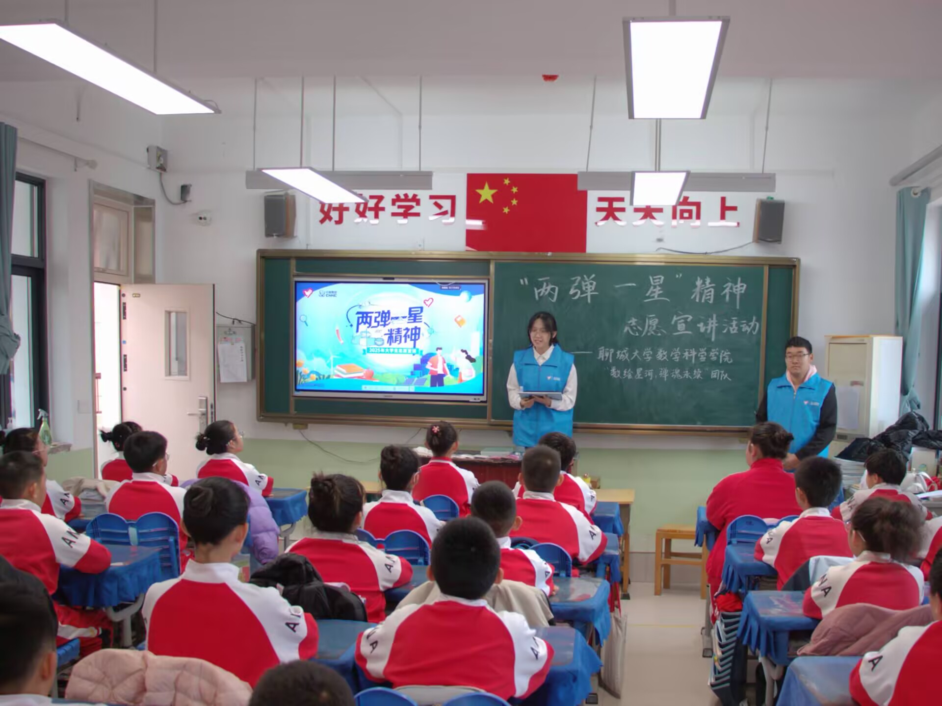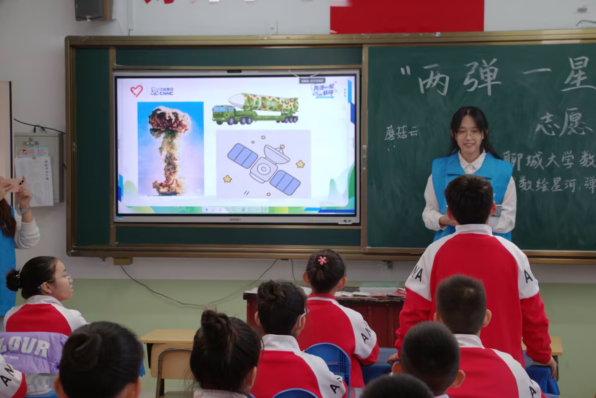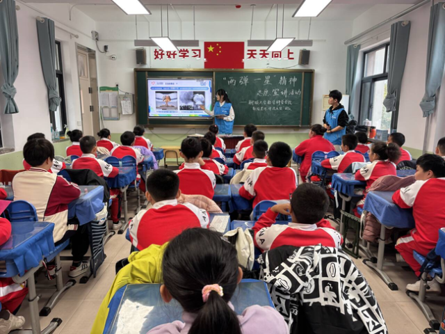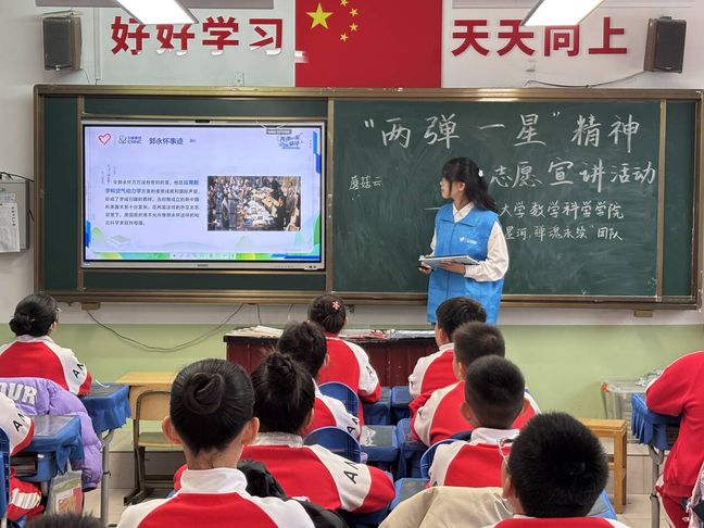 为引导青少年树立科技报国的远大志向,弘扬“热爱祖国、无私奉献、自力更生、艰苦奋斗、大力协同、勇于攀登”的“两弹一星”精神,11月6日,悟空体育“数绘星河,弹魂永续”志愿宣讲团于悟空体育附属小学开展“传承科学家精神,砥砺报国之志”暨“两弹一星”精神宣讲活动。