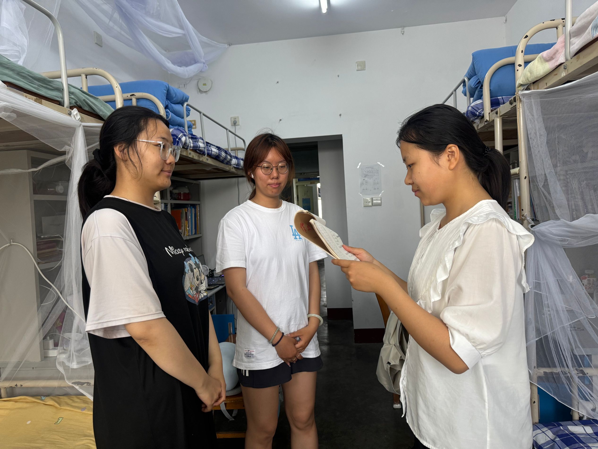 本次检查以“消除隐患、强化意识”为目标,工作人员重点对宿舍用电安全、消防设施、卫生状况及公共区域管理情况进行细致摸排,尤其针对违规电器使用、私拉电线、易燃物品堆积等问题进行了现场督导,对存在安全隐患的宿舍提出整改意见。结合近期高校宿舍安全事故案例,工作人员通过现场讲解,向毕业生系统普及了防火逃生、防诈骗及财产安全知识,提醒同学们增强安全防范意识,确保离校前的人身和财产安全。此外,他们主动与毕业生进行交流,详细了解同学们的离校准备情况及实际需求,并对其提出的问题给予耐心解答和帮助,倡导同学们严格遵守宿舍安全规定,以文明行动为老员工活画上圆满句号。