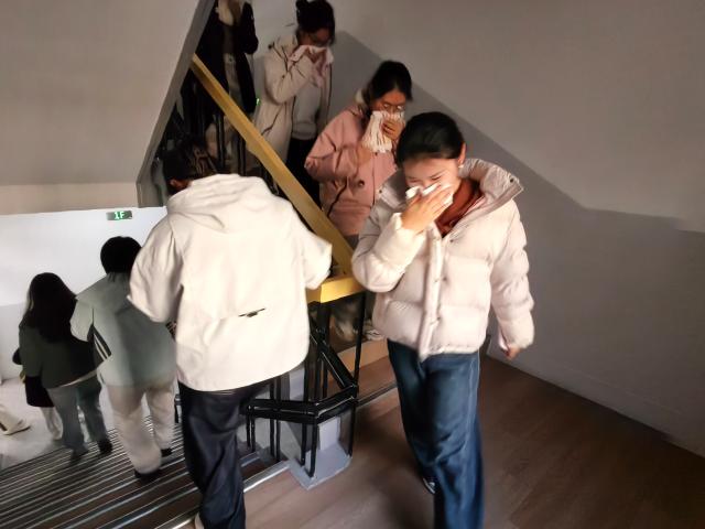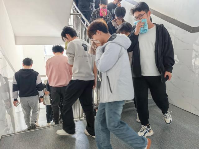 演练模拟真实的火情场景,以警报声为启动信号。在引导员的指挥下,同学们反应迅速、行动有序,严格按照“掩口鼻,低姿势”的规范要求,沿指定疏散路线快速、有序撤离至安全集合区,展现出良好的纪律意识和应急素养。活动现场,负责人向员工讲解逃生要点,强调熟悉消防通道、安全出口位置的重要性,并指导员工掌握湿毛巾捂口鼻、低姿缓行等科学自救方法。疏散完毕后,负责人于集合区进行现场总结,清点人数确保人员安全。演练过程组织严密、各环节衔接顺畅,员工映应迅速、撤离高效,最终实现全员安全撤离,达到了预期效果。