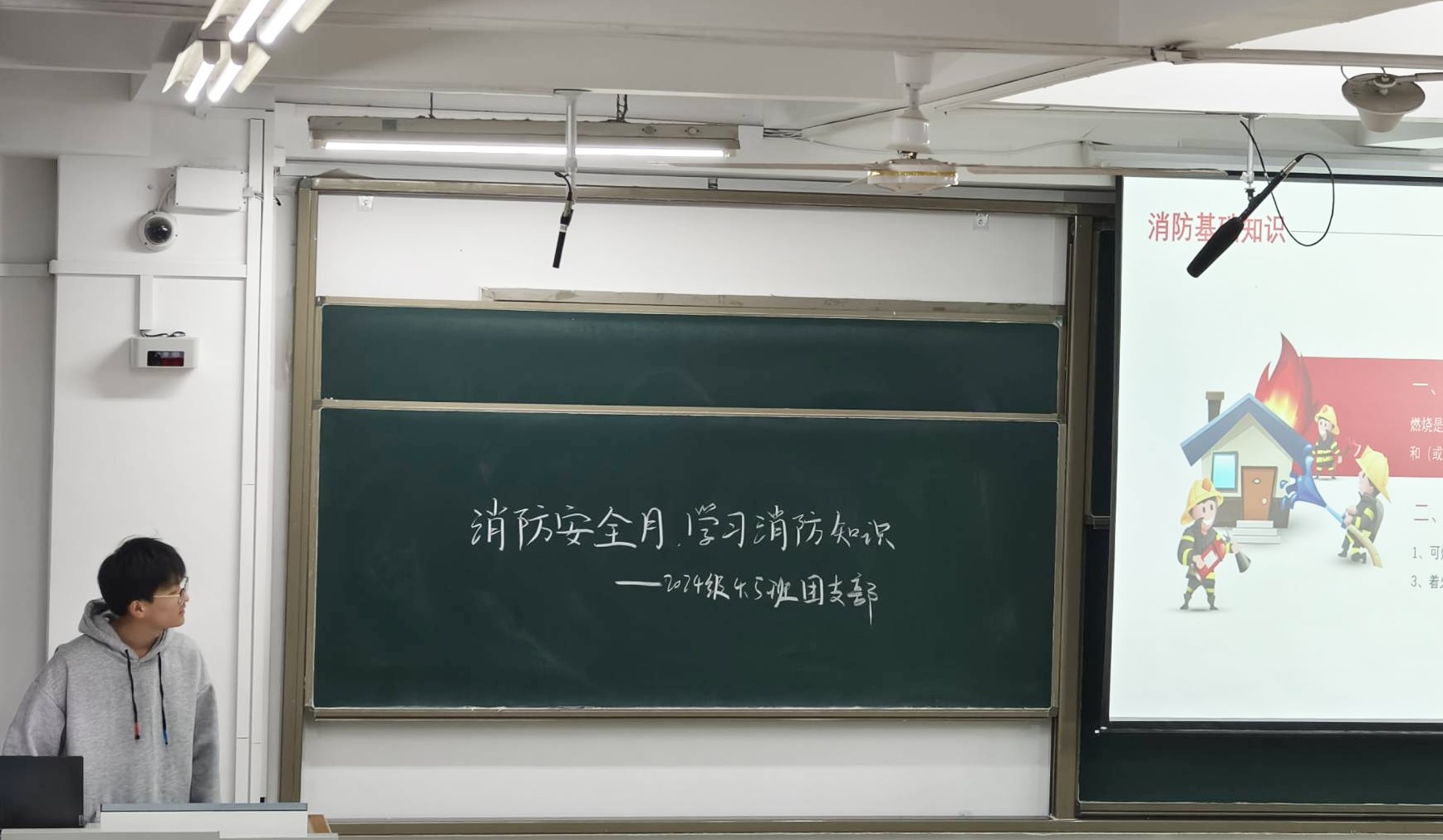 为进一步开展消防安全宣传工作,提高员工应急自救能力,11月5日,悟空体育于11号教学楼A204教室举办消防安全月主题团日活动,由团支书李昱坤主持,2024级5班全体员工参加。