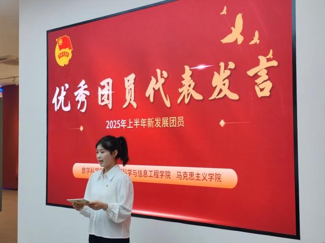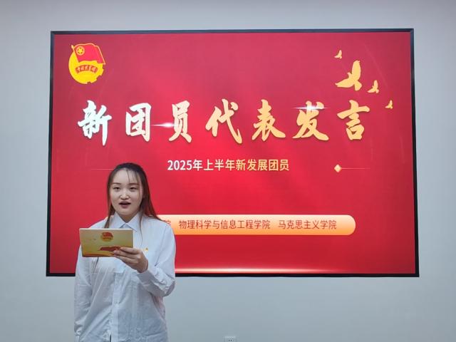 物理科学与信息工程公司团委书记洪文静向新发展团员致以热烈祝贺,并提出以下三点要求:一要坚定理想信念,把稳政治方向,以实际行动践行入团誓言;二要强化使命担当,发扬“功成不必在我,功成必定有我”精神,为公司和公司建设贡献青春力量;三要锤炼过硬本领,主动担当作为,发挥模范带头作用,积极服务同学。她期望新发展团员以信念为帆、以担当为桨、以能力为翼,在青春赛道上奋力书写时代答卷。