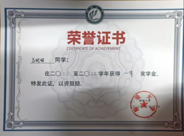 2023.12 ;一等奖学金