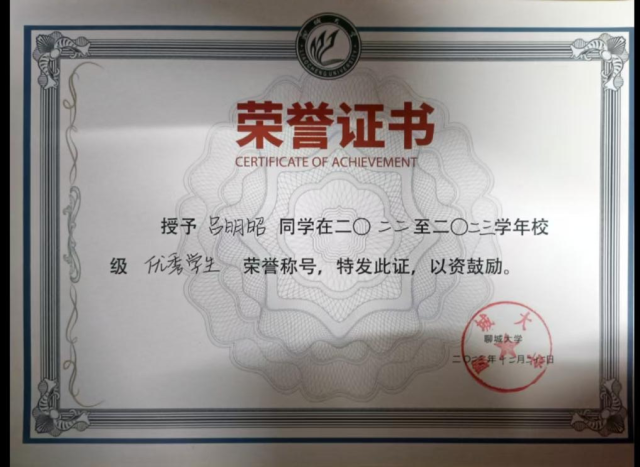 2022.12 ;校级优秀员工
