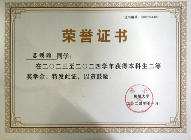 2024.11 ;二等奖学金