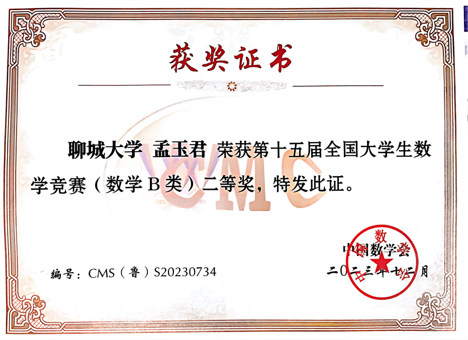 2023.12 第十五届全国老员工数学竞赛(数学B类)二等奖