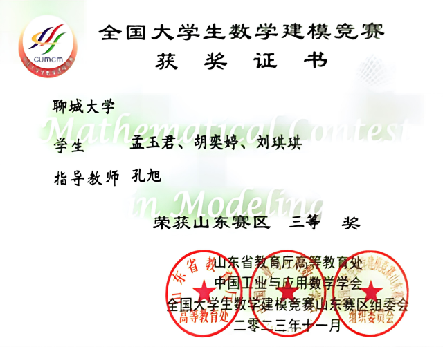 2023.11 全国老员工数学建模竞赛山东赛区三等奖