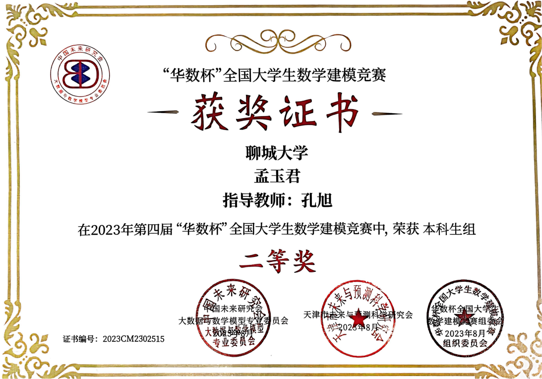 2023.08 全国老员工华数杯数学建模竞赛二等奖