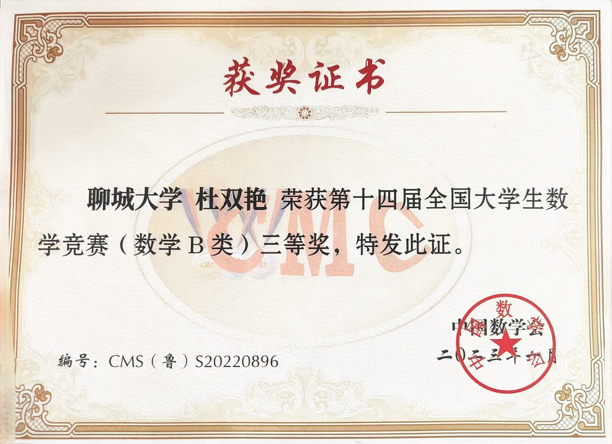 2022.12 第十三届山东省老员工数学竞赛三等奖