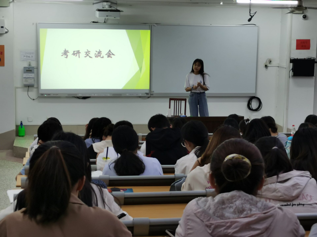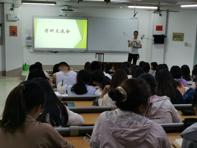 此次交流会共分为两个部分。首先,考研取得优异成绩的五位同学从自身考研经历出发,围绕如何选取专业和院校、制定复习计划、调整心态以及复试中的注意事项等方面谈了自己的亲身体验和感受。潘娇和许敏学姐强调同学们在准备考研时应多个渠道寻找学习资料,合理安排时间,提高复习效率。并建议同学们在考研时不要盲目比较,以免影响自己的心态。王宏懿学长主要从考研调剂方面出发,向同学们介绍了考研信息的获得渠道以及复试的注意事项。张慧和方悦学姐从真题、笔记等具体问题着手,叮嘱同学们要仔细研究真题题型,揣测出题动机。随后的自由提问阶段,同学们就如何选择考研公司,选择什么样的培训班以及复习备战过程中遇到方方面面的问题向学长学姐们寻求意见建议。学长学姐们耐心地为同学们做了解答,并且还向同学们推荐了一些教辅资料。最后,主持人做总结发言。至此,本次考研交流会圆满结束。