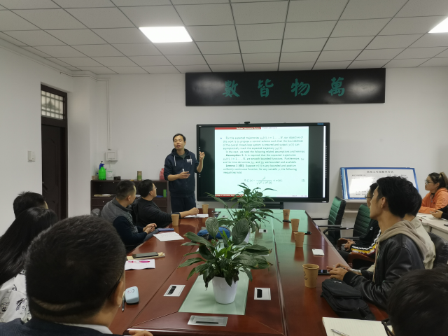 在此次报告中,首先,牛奔教授讲解了大规模系统的研究背景,其次,详细介绍了目前对于大规模系统研究中采用的主要的研究方法--分散控制的原理:通过实现对每个子系统控制器单独设计,达到节约成本,提高各个子系统之间的信息传输的效率。最后,针对目前该领域研究的热点和难点问题--带有未知强互联的大规模系统的自适应控制问题详细讲述了自己的最新进展。报告过程中,牛奔教授对包括神经网络的逼近、动态面控制、界化不等式构造等工具的原理进行了细致入微的解读,还就投稿过程中针对审稿人提出的诸多棘手问题的回复经验跟在场的老师和同学们进行了分享。报告结束后,牛奔教授认真回答了在场师生的提问,还针对公司产品等问题跟公司老师和同学们进行了深入交流。