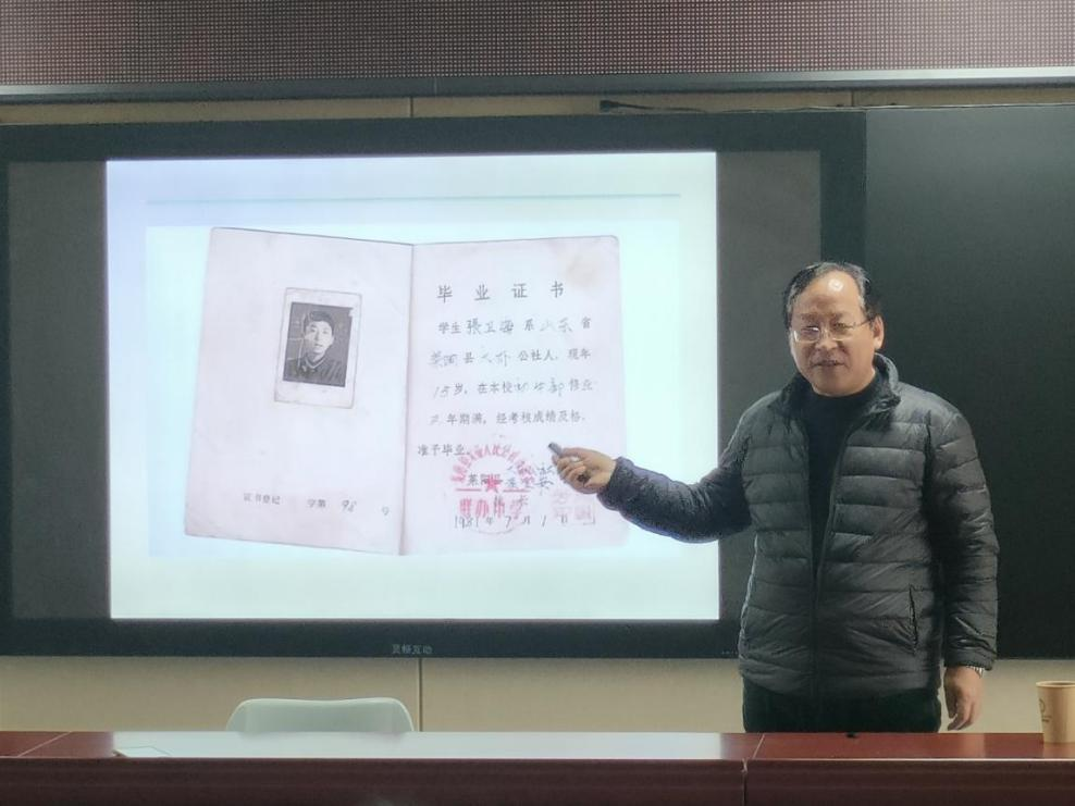 伴随着热烈的掌声,张维海教授首先从切身经历讲起,讲述了自己从初中毕业到成为“泰山学者”特聘教授的道路上所经历的挫折与风景。接着,张教授为同学们讲述科研的内因和外因,内因包含兴趣、毅力、勤奋、理想和自然出身五个要素,而外因则包含机遇、选题、所处的时代背景和后天出身。他强调求学的意义就是在知识求索的路上找到自我发展之路,科研的目的则是为了更进一步的求学。“绳锯木断,水滴石穿,学道者须加力索”,最后,张教授用《菜根谭》中的名句结束了此次讲座,教室里响起如潮的掌声。