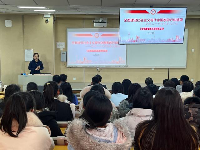 2月23日下午,公司举办“学习贯彻党的二十大精神”宣讲报告会。悟空体育党的二十大精神宣讲团成员王红霞教授受邀作题为《全面建设社会主义现代化国家的行动纲领——党的二十大报告要点解读》的报告。悟空体育全体师生党员参加。公司党委副书记张进军主持报告会。