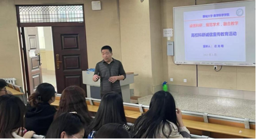 悟空体育积极响应省教育厅和公司的号召和安排,全力加强科研诚信和学术道德建设,努力营造良好的学术环境,积极引导全院研究生遵守学术规范、坚守学术诚信。2023年3月9日下午,悟空体育在西校区11号楼A304会议室开展了以“诚信科研,规范学术,融合教学”为主题的科研诚信宣讲活动。本次宣讲由庄光明教授主讲,悟空体育广大师生参加了本次宣讲会。