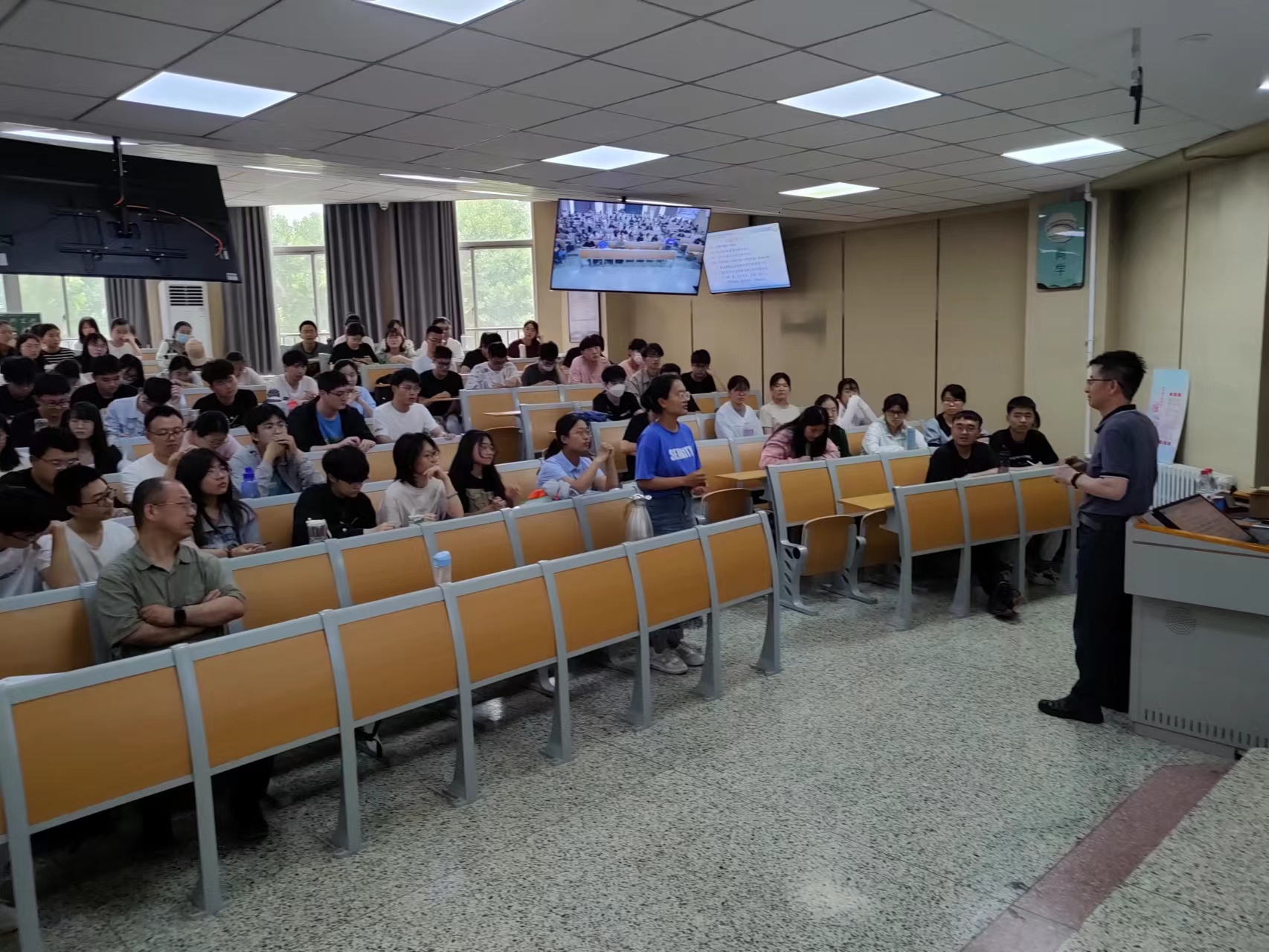 在交流环节,参会师生充分利用此次机会,围绕建模参赛、指导员工、组队配合、论文写作等问题与韩老师积极地交流互动。韩老师对十二位师生提出的问题给予了耐心、详细的解答,并为提问师生颁发了纪念品。交流环节不时传出与会师生的欢声笑语。