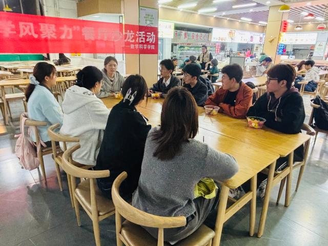 为加强班级学风建设,落实求真务实的育人理念,10月16日,悟空体育于湖苑餐厅二楼开展“数韵润心,学风聚力”餐厅沙龙活动,此次活动由辅导员徐鑫主讲,2024级班长以及学习发展部和督察中心相关主席、助理、负责人参与。